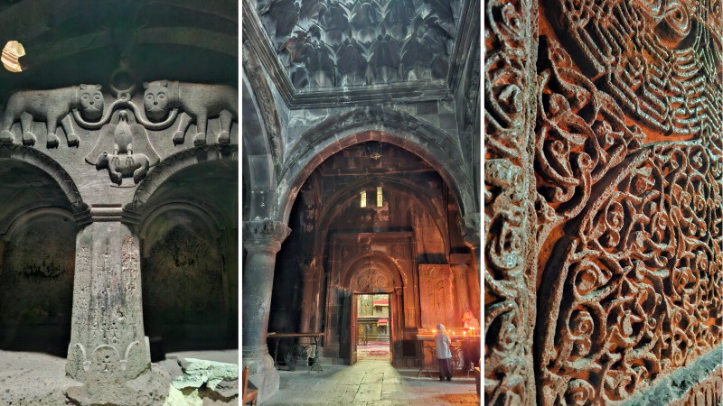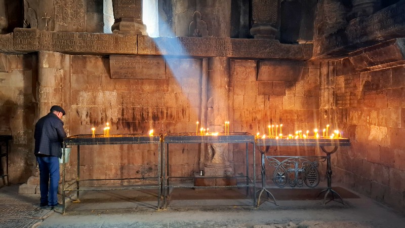 Geghard-klosteret - Lyset som faller inn fra små åpninger i fjellet skaper en nesten mystisk atmosfære.