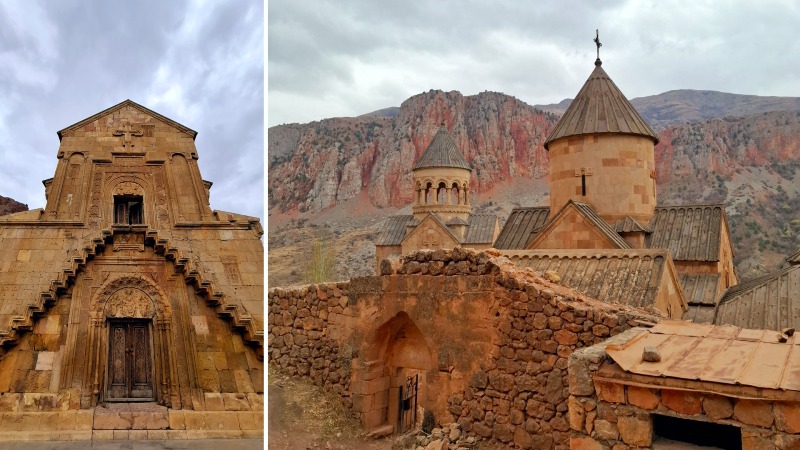 Armenia byr på spektakulær natur, og det er spennende å kjøre mellom severdighetene. Landskapet endrer seg raskt – fra åpne sletter til dramatiske fjellformasjoner. Veien gjennom rødlige klipper og trange juv førte oss til Noravank, et kloster fra 1200-tallet som ligger spektakulært til omgitt av høye, oransjerøde fjellvegger.