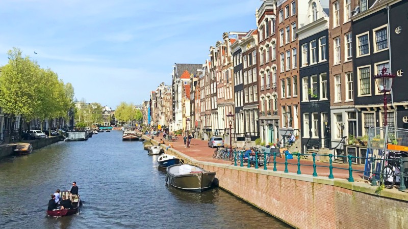 Allerede før vi lander på Schiphol Flyplass ser vi tulipanåkrene i flotte farger fra flyet. Vi er på vei til våren. Reisen starter ofte i Amsterdam, kanalenes og broenes by. Etter å ha installert oss på skipet er det ut i byen. Nederland med sin folketetthet har lagt til rette for både kollektivtransport og sykkel, så se opp for syklistene. De kommer i en rasende fart. Visste du at det hvert år havner tusenvis av sykler i kanalene som må fiskes opp på dugnad?