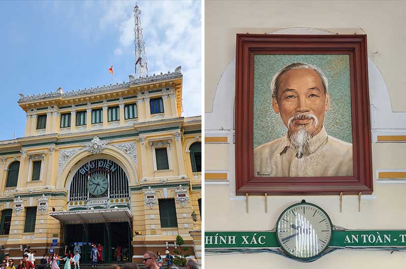 Hovedpostkontoret ble bygget under den fransk kolonitiden og har et stort bilde av Ho Chi Minh på den ene veggen.