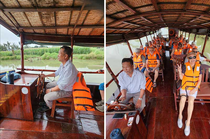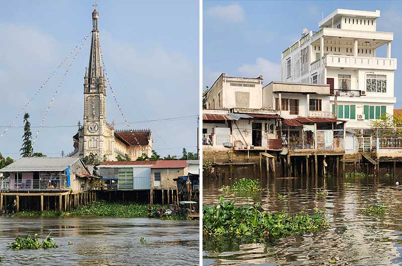 Vi kommer til Tan Chau (ca. 185 000 innbyggere) om morgenen og blir fraktet med små båter inn til byen. Der får vi en rundtur med rickshaw.