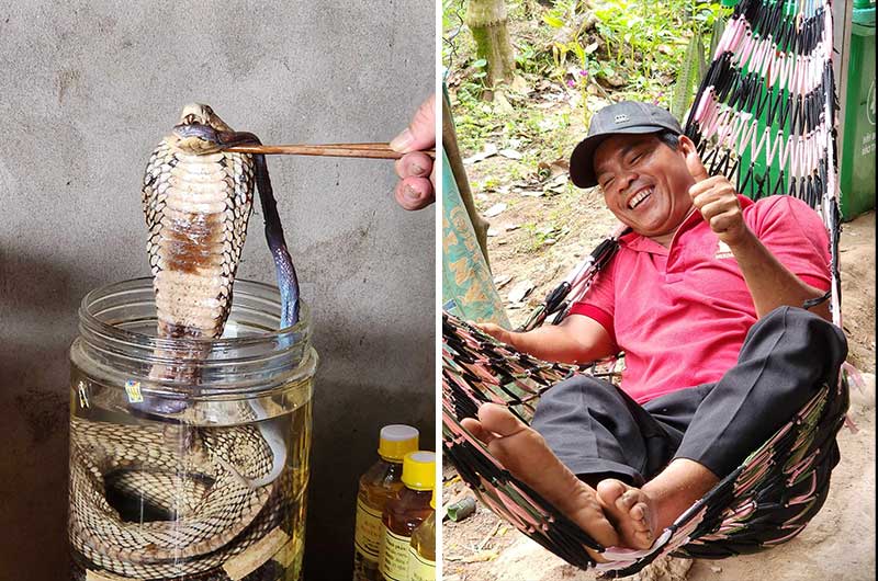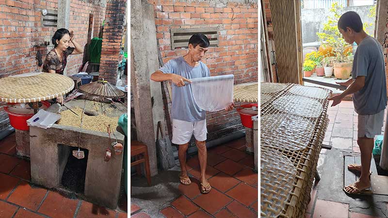 Vårt første stopp er Cai Be, hvor vi skal besøke en familie som lager rispapir som brukes til å lage vårruller. Vi får se hele prosessen i det gammeldagse og primitive kjøkkenet. De er rause med smaksprøver av sine hjemmelagde søtsaker av kokos. For de som ønsker det, kan man også teste slangebrennevin (som skal være bra mot giktsmerter). De selger også klær og suvenirer.