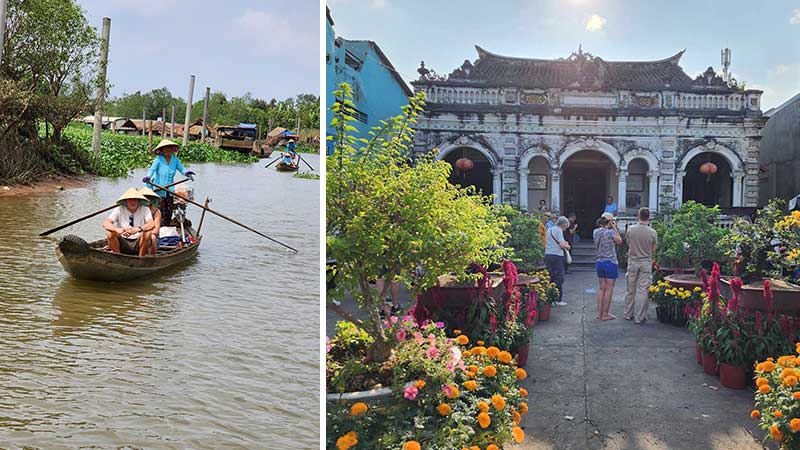 I dag  skal vi besøke to små byer i Mekongdeltaet. Vi går over i mindre båter som tar oss til elvebredden, hvor  utflukten fortsetter til fots.