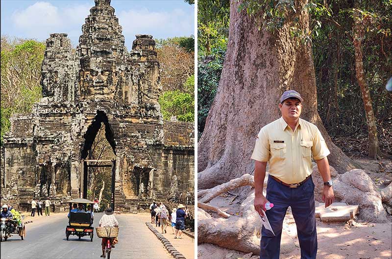 Inngangsporten til Angkor og vår dyktige lokalguide.
