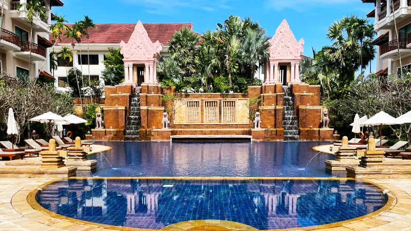 Det blir også tid til å slappe av ved bassenget på vårt lekre hotell i Siem Reap – Sokha Angkor Resort.