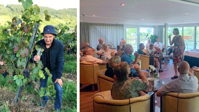 Vinsmaking i Rhin-og Moseldalen er «obligatorisk». Når Ragnhild er reiseleder, blir det som regel en ekstra vinsmaking om bord, med vin og historier fra Jutta og Emils vingård i Reil i Moseldalen