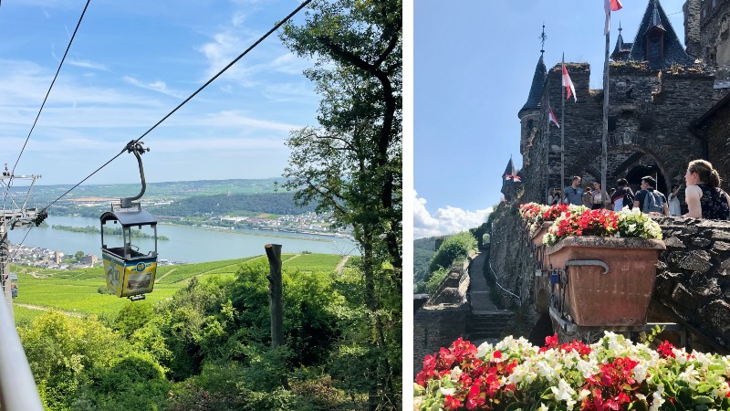 Taubanen i Rüdesheim, og blomsterprakt på vei opp til Reichsburg i Cochem