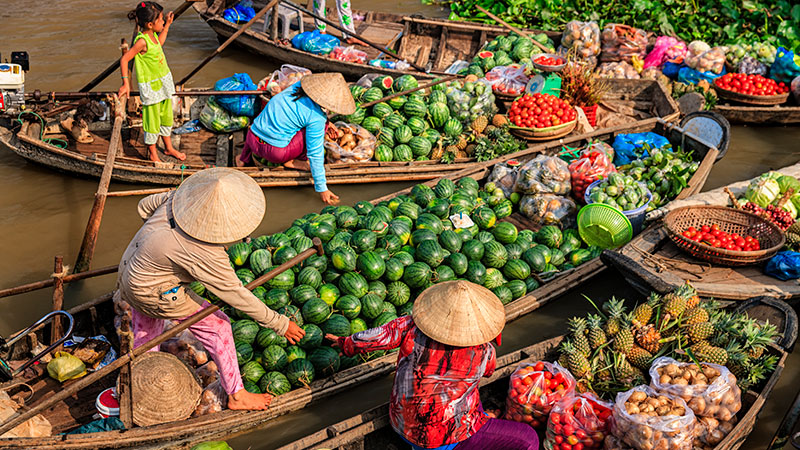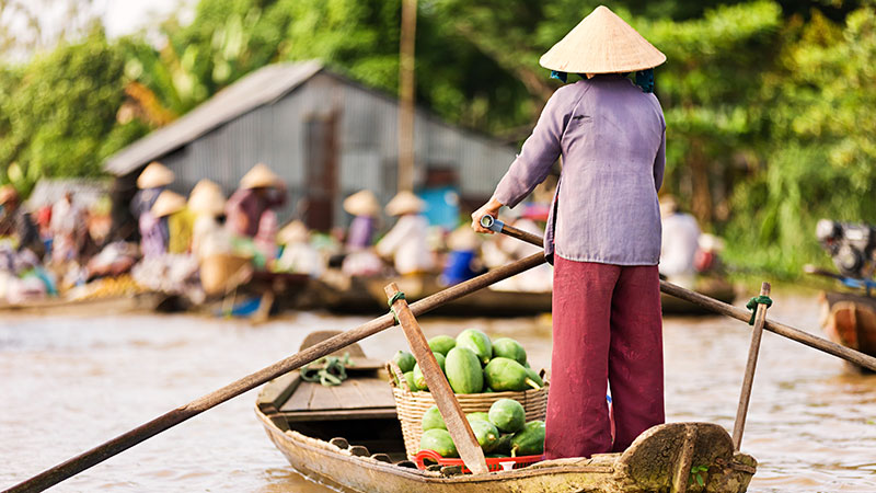 Tidlig om morgenen forlater vi Phnom Penh og seiler videre sørover mot Vietnam og det store Mekongdeltaet. Fra skipet har vi utsikt til livet langs elven og små fiskerlandsbyer der tiden nærmest har stått stille. I løpet av formiddagen kommer vi til grensen mellom Kambodsja og Vietnam. Etter at passformalitetene er unnagjort, fortsetter seilasen nedover den brede Mekongelven.