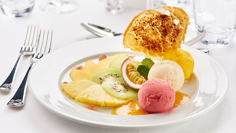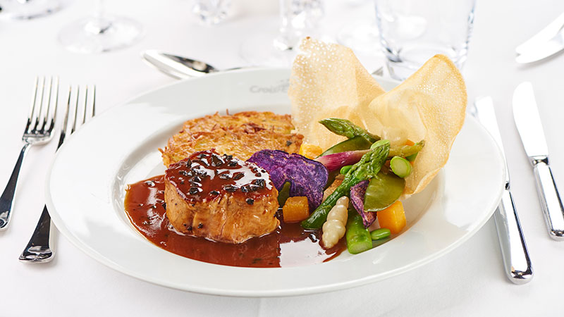 Rettene er satt sammen av kjøkkensjef Alain Bohn, som er medlem av det anerkjente franske assosiasjonen Maîtres Cuisiniers de France. Maten tar utgangspunkt i fransk gastronomi, men med lokale ingredienser og smaker fra landet og stedet der skipet seiler. Til lunsj og middag akkompagneres måltidet av utvalgte viner. På Croisi er alle drikkevarer inkludert, både i restauranten og i baren (bortsett fra premium-merker og vin fra vinlisten).
