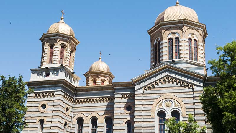Etter frokost tilbys det en byrundtur i Ruse (ikke inkludert). Lokalguiden tar oss først med på en busstur hvor vi får et inntrykk av byens arkitektoniske stil, som er en miks av nasjonal renessansearkitektur, blandet med bulgarsk og rumensk kultur. Vi ser Dohodno Zdanie (det gamle teateret) bygget i 1902, Frihetsmonumentet og den katolske kirken med fargerike glassmalerier. Det blir et stopp i sentrum for smaksprøver på lokale bakverk og vin. Deretter er det tid til å rusle rundt og titte i butikkene på egen hånd før bussen kjører oss tilbake til skipet for lunsj. Mens vi spiser seiler vi tvers over elven til Giurgiu på den rumenske siden av Donau. Her blir det et kort opphold.