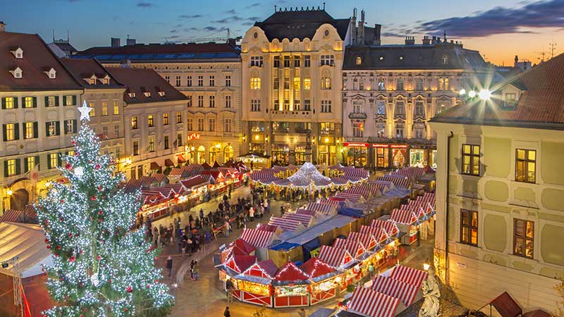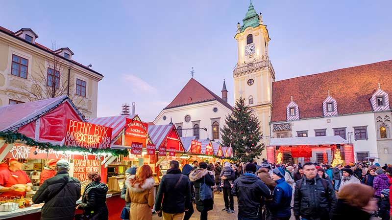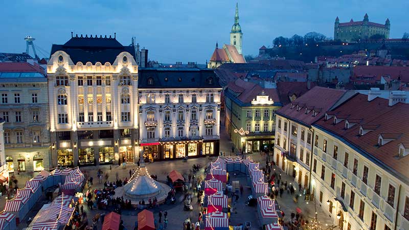 Julemarkedet i Bratislava ligger på torget midt i gamlebyen. Her kan du smake på tradisjonell slovakisk mat og drikke, og finne unike julegaver. Det er også et mindre marked på plassen foran Bratislavsky Hrad. Vi tilbringer en hyggelig dag i Bratislava og kan utforske byen i vårt eget tempo.