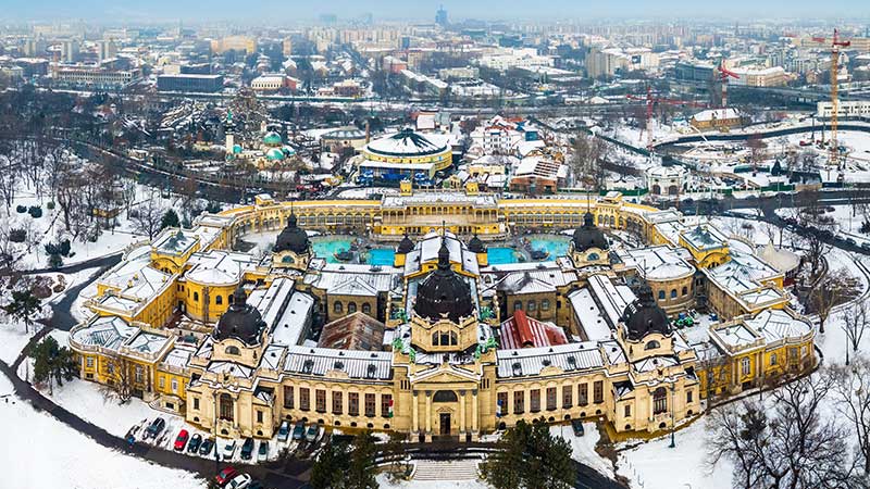 Nyt en utendørs svømmetur i Szechenyi-badet