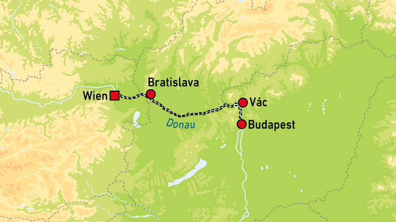 Etter å ha krysset flere landegrenser i løpet av natten, kommer vi om morgenen til den lille ungarske byen Vác. Her kan man se Ungarns eneste triumfbue, bygget i 1764 i forbindelse med at keiserinne Maria Teresia av Østerrike besøkte byen. Det blir kun et kort opphold i Vàc før skipet seiler videre.