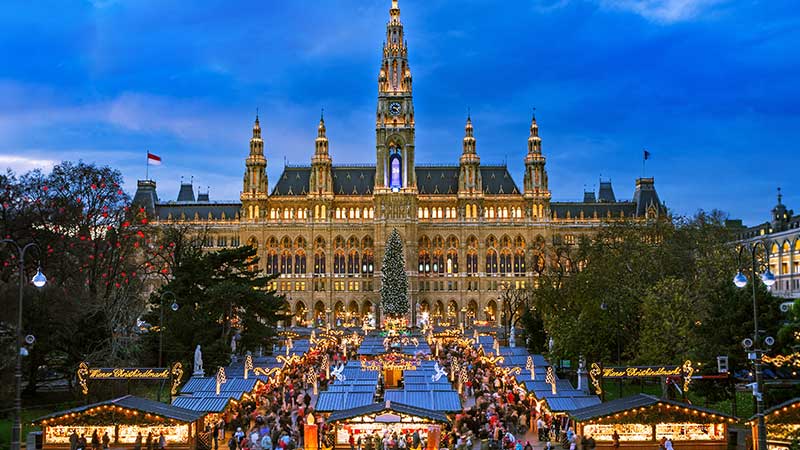 I førjulstiden forvandles Wien til en stemningsfull juleby med glitrende lys, duften av glühwein og tradisjonsrike julemarkeder på nesten hvert torg. Byens mest berømte marked ligger foran Rådhuset. En stor, lysende portal ønsker besøkende velkommen til det tradisjonelle markedet. Her kan du la deg friste av kunsthåndverk, julepynt, kulinariske godbiter og selvfølgelig glühwein. Et roligere og mer stemningsfullt marked finner du ved Belvedere-slottet, der det praktfulle barokkpalasset danner en elegant bakteppe til markedsbodene. Avslutt gjerne besøket i Wien med å smake på lokale spesialiteter som Sacher-torte eller apfelstrudel på et av byens mange elegante konditorier.