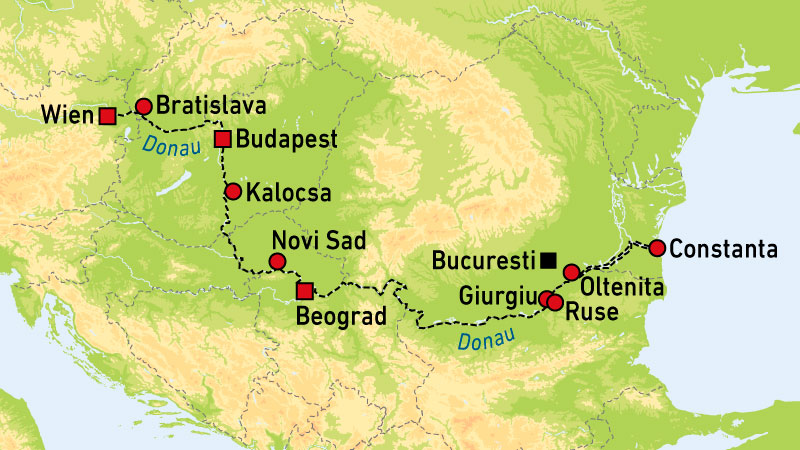Seks land og fem hovedsteder langs Donau