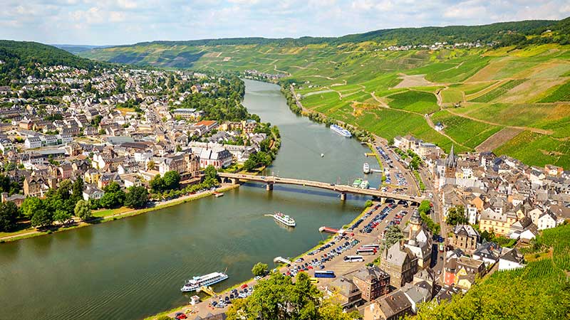 Det vakre landskapet langs Mosel og Rhinen danner rammen rundt våre populære cruise med Leonora. Elven smyger seg gjennom et naturskjønt område med vinmarker, borger fra middelalderen og pittoreske små byer med bindingsverkshus. Cruiset starter i Koblenz, som ligger der Mosel og Rhinen møtes. Første etappe går på Rhinen gjennom den UNESCO-vernede Øvre mellomrhindalen, til Rüdesheim. Deretter seiler vi tilbake til Koblenz og inn på Mosel hvor vi besøker de små sjarmerende byene Traben-Trarbach, Bernkastel-Kues og Cochem. Det blir også en utflukt til Trier, kjent for sine godt bevarte romerske ruiner.