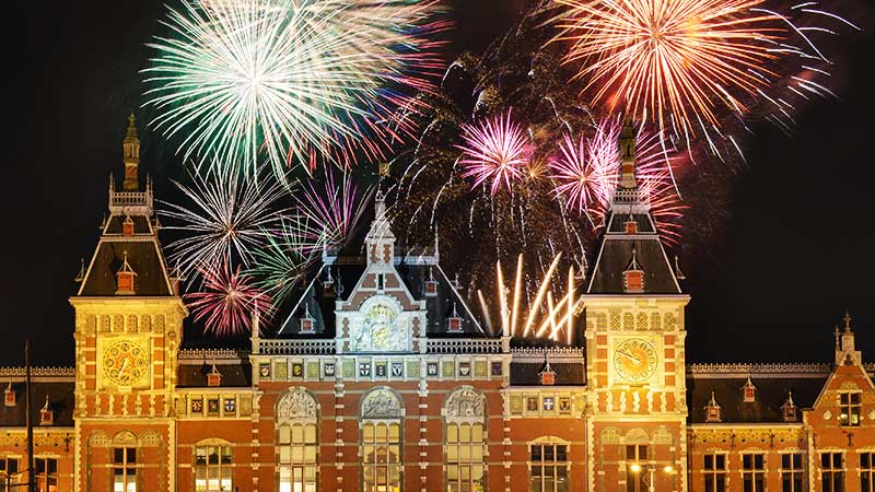 Bli med oss på cruise gjennom Nederland og feire overgangen til det nye året om bord på det populære skipet MS Leonora. På nyttårsaften ligger vi ved kai i Amsterdam og hygger oss om bord med festmiddag og dans i salongen. Ved midnatt tar vi turen opp på toppdekket og får servert kransekake og bobler i glasset mens vi lar oss imponere over nyttårsfyrverkeriet.