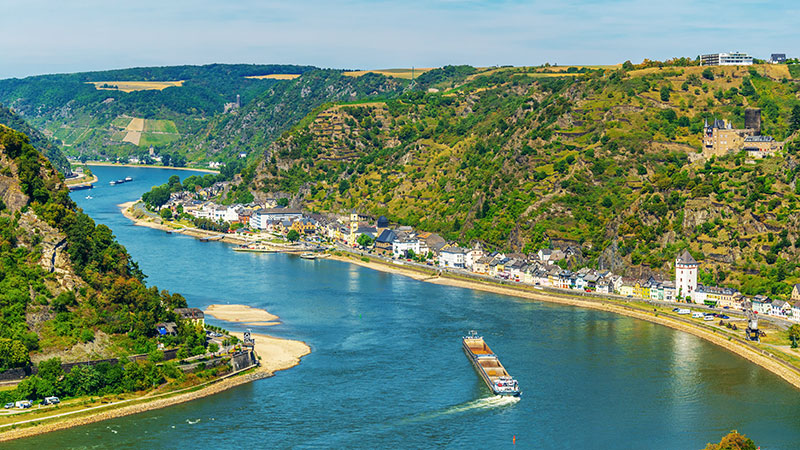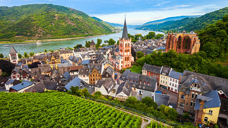 - Små vinbyer langs elven: Boppard, Bacharach og Rüdesheim