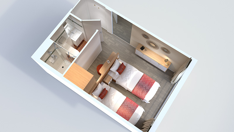 Alle lugarene er utvendige og har bad med dusj, hårtørrer, TV, safe og aircondition. Lugarene har to enkeltsenger som kan settes sammen til en dobbeltseng. Lugarene på øvre dekk og midtdekk har fransk balkong, mens lugarene på hoveddekk har små vinduer som ikke kan åpnes. Standardlugarene er 12–13 m².