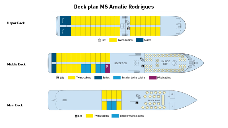 Om bord på MS Amalia Rodrigues er det restaurant, salong med dansegulv, resepsjon og soldekk med et lite basseng. Gratis Wi-Fi i fellesområdene. CroisiEurope er kjent for sitt gode, franskinspirerte kjøkken. Om bord er alle drikkevarer inkludert, både i restauranten og baren.