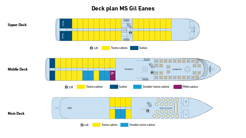 Fasilitetene om bord på MS Gil Eanes inkluderer restaurant, salong med dansegulv, resepsjon og soldekk med et lite basseng. Gratis Wi-Fi i fellesområdene. CroisiEurope er kjent for sitt gode, franskinspirerte kjøkken. Om bord er alle drikkevarer inkludert, både i restauranten og baren.