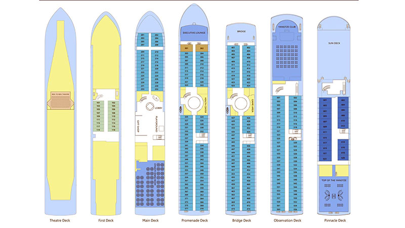 I løpet av cruiset arrangeres en rekke ulike aktiviteter om bord, blant annet foredrag om kinesisk historie og kultur, Tai Chi timer, og kurs innen matlagning og kalligrafi. I tillegg til dette er det kveldsshow og annen underholdning. Noen av akivitetene er inkludert, mens noen bestilles og betales for om bord. Daglig utflukt er inkludert i prisen, men det tilbys også flere valgfrie utflukter man kan kjøpe om bord.
