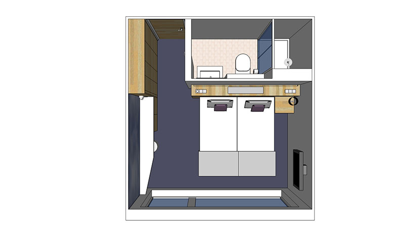 Alle lugarene er utvendige og har bad med dusj, hårtørrer, TV, minisafe, lite kjøleskap og aircondition. Det er to enkeltsenger som er satt sammen til en dobbeltseng. Lugarene på øvre dekk har fransk balkong (vindu med skyvedør), mens lugarene på hoveddekk har stort vindu som kan åpnes. Størrelsen på dobbeltlugarene er 14 m².