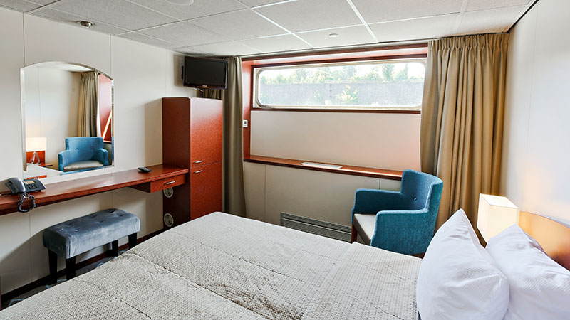 Alle lugarene er utvendige og har bad med dusj, hårtørrer, TV, safe og aircondition. Lugarene på hoveddekk har et smalt vindu som ikke kan åpnes. På midtdekk har lugarene stort vindu som kan åpnes, mens øvre dekk har fransk balkong (vindu fra gulv til tak som kan åpnes). Lugarene er på cirka 14 m².
