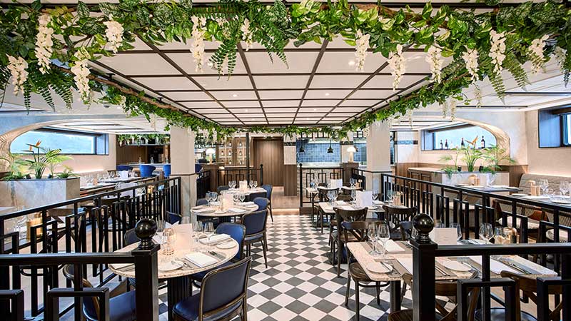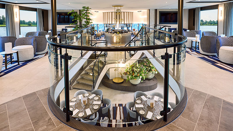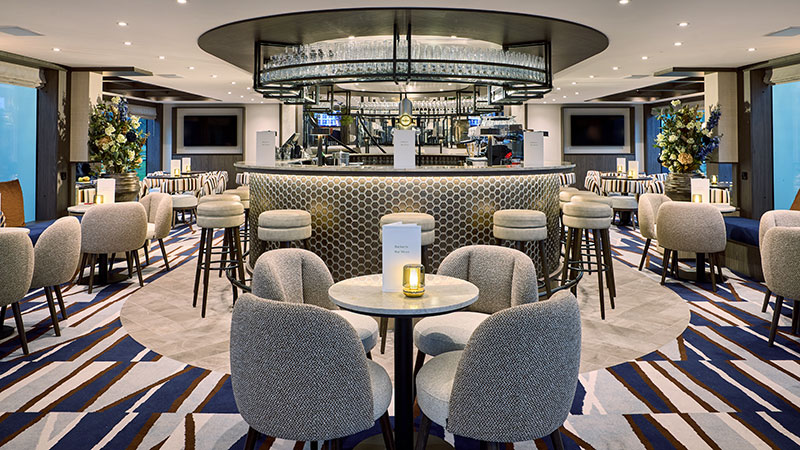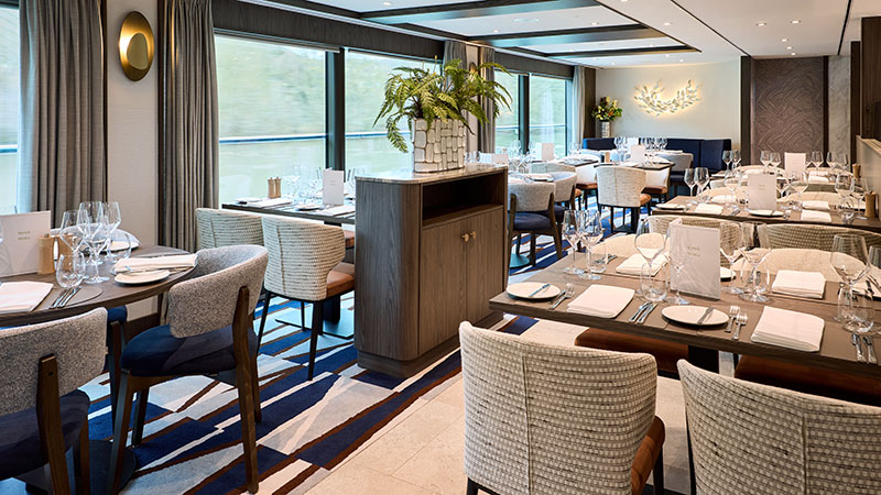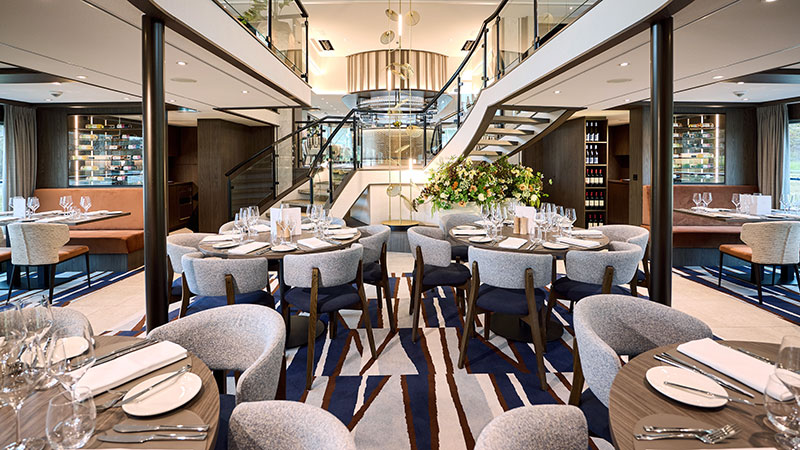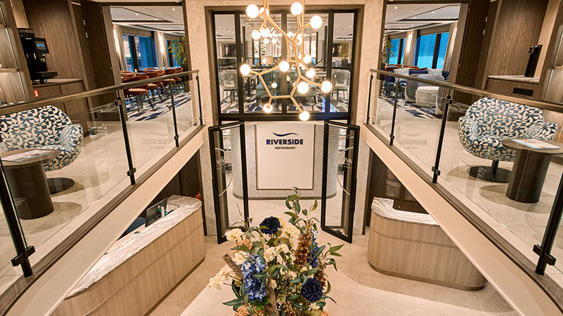 Fasilitetene inkluderer to restauranter, en bistro, treningsrom og velværeavdeling med spa, frisør og massasje. Baren ligger helt forut i skipet, og mellom den og salongen er det et atrium med trapp ned til hovedrestauranten – noe som gir en åpen og luftig planløsning. Hovedrestauranten Riverside har fleksible spisetider og åpen bordsetning. Restauranten Moments har en meny inspirert av Spania, Frankrike og Italia, mens den lille og intime Le Bistro tilbyr enkle, men klassiske, retter til lunsj og middag. Det er heis mellom Ruby (midtdekk) og Diamond dekk (øvre dekk). På soldekket er det sittegrupper, dekkstoler, jacuzzi og en putting green.