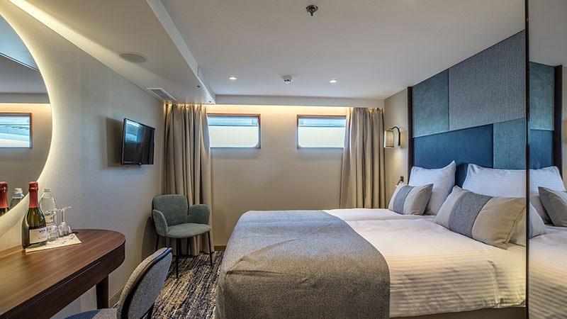 Skipet har totalt 76 lugarene. Alle er utvendige og har bad med dusj, hårtørrer, TV, safe, minibar, Nespresso kaffemaskin og aircondition. Lugarene på Diamond og Ruby dekk har fransk balkong, mens lugarene på Emerald dekk har to små vinduer høyt på veggen som ikke kan åpnes. Standardlugarer er 15 m², juniorsuitene på Ruby dekk 17 m² og juniorsitene på Diamond dekk 19 m². En heis forbinder resepsjonsområdet med Diamond dekk, Ruby dekk og restauranten.